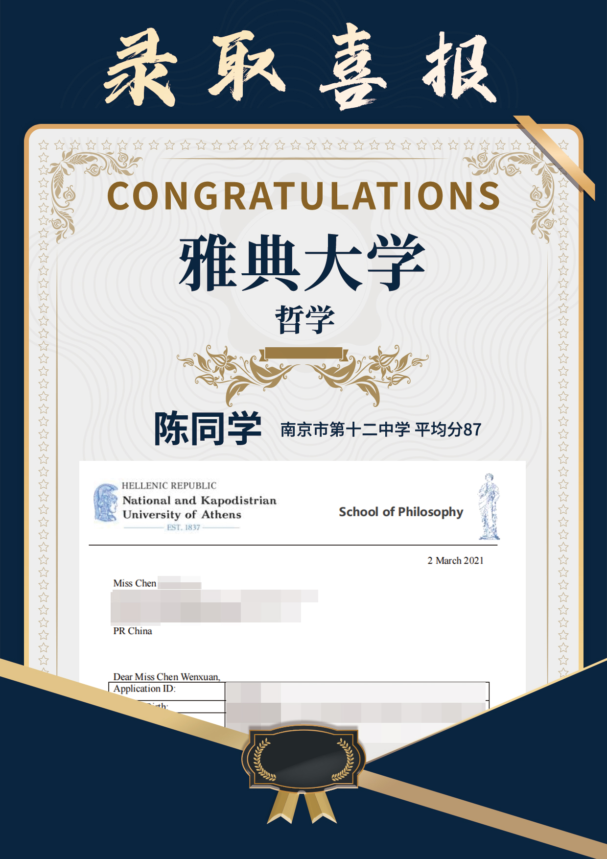 雅典大學Offer