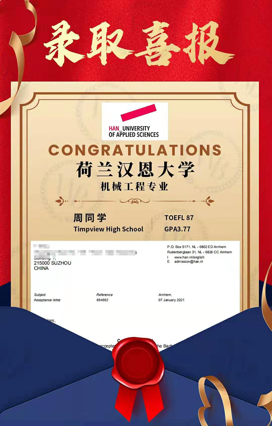 成功案例|阿姆斯特丹大學Offer
