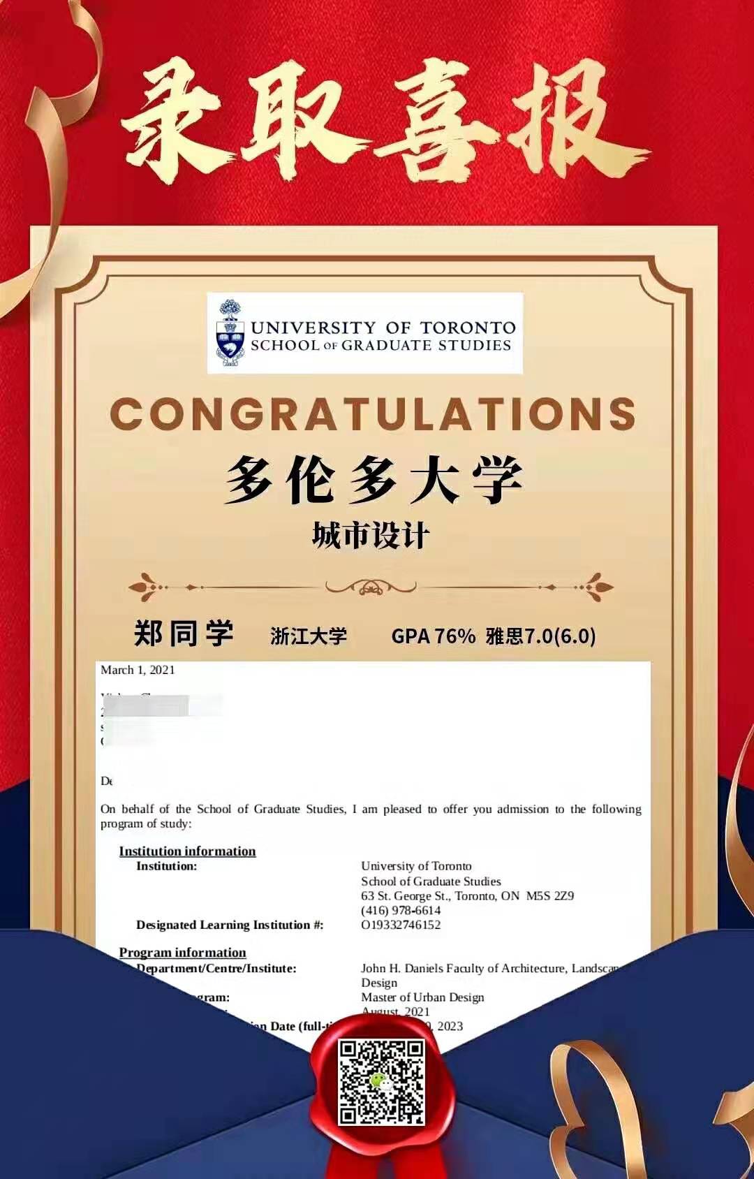 多倫多大學城市設計Offer