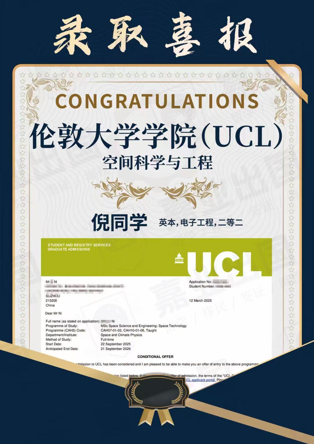 倫敦大學學院offer