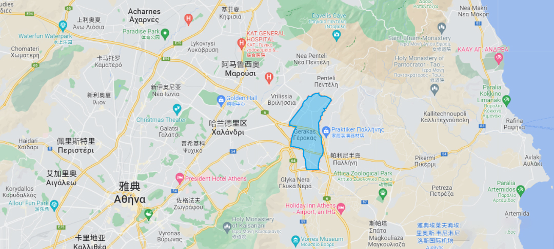 第二:Gerakas位于南北兩座大山之間海拔在100米左右地勢平坦開闊、視野良好西接Vrilissia、哈蘭德里、圣帕拉斯凱維北鄰Penteli。交通便利、生活氣息濃厚是一個典型的中產階級聚居區。