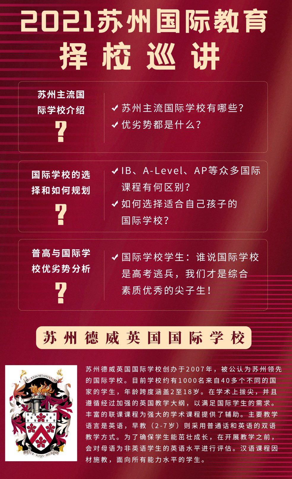 2021蘇州國際學校擇校巡演-園區 來源:未知發表時間:2023年05月09日 13:24:58瀏覽量: 文章標簽:美國留學(214)英國留學(317)加拿大留學(169)澳洲留學(93) 上一篇:2021年蘇州國際學校擇校巡講-太倉 下一篇:2021蘇州國際學校擇校巡演-吳江
