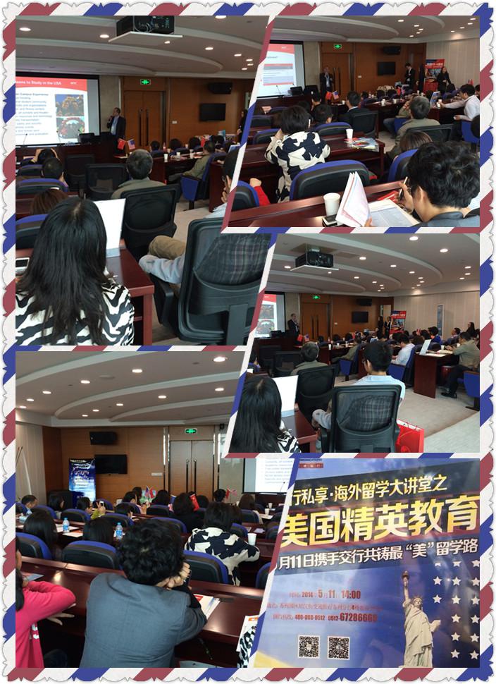 【金陽光出國公益講座系列之體驗美國文化】圓滿結束。5月11日細雨綿綿,也無法阻擋大家對美國精英教育的渴望,金陽光出國攜手蘇州交通銀行特邀美國名校前招生官SCOTT Hammond與資深美國留學專家,與大家分享了美國名校申請技巧、分享美國生活體驗及本月北卡州高中 大學的考察實錄 、現場為有留學意向的學生規劃好留學之路。現場有獎問答即獲得各種美國原單禮品 奉上極具美國特色的各式點心, 活動在熱烈的咨詢中落下帷幕 多位家長已預約一對一的VIP面談,一切為了孩子的陽光未來 我們一起前行。